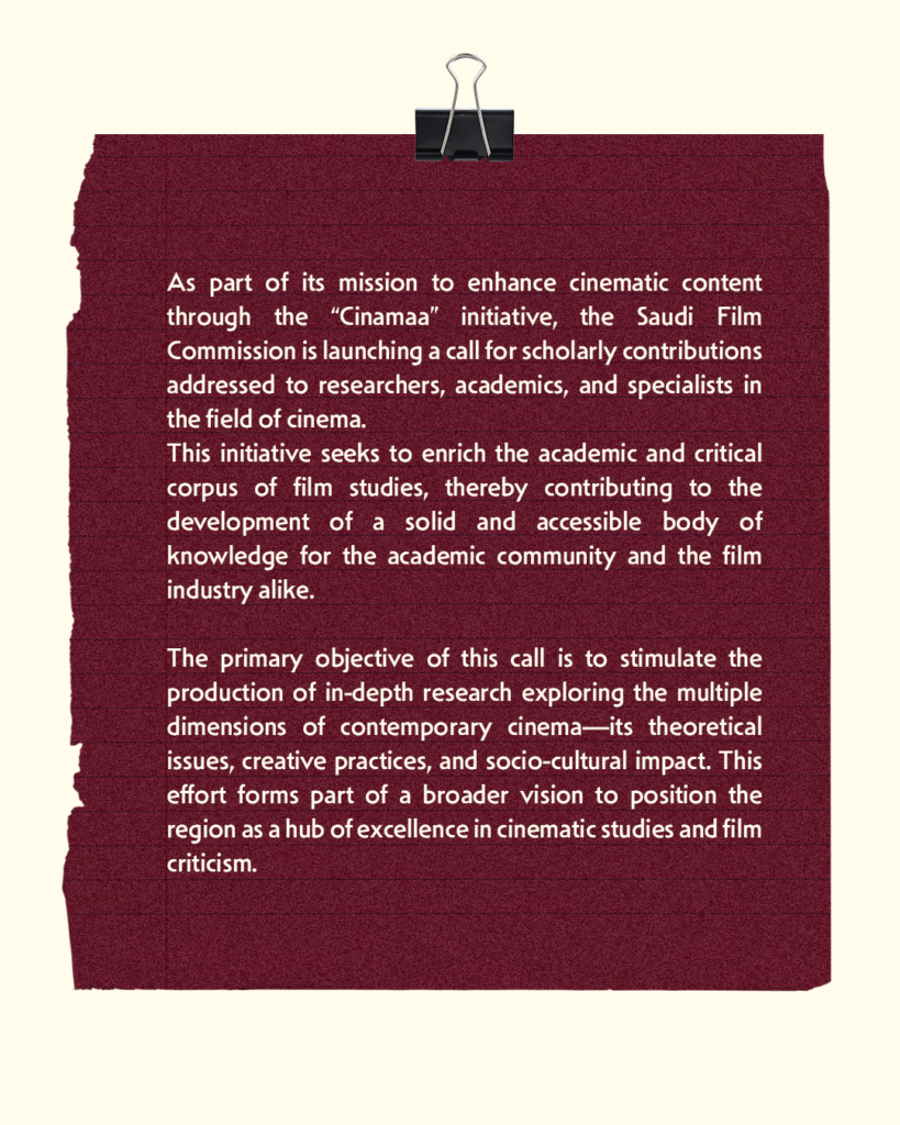 In collaboration with our Saudi Arabian partners @Cinamaa_sa, we are pleased to announce a Call for Papers dedicated to Cinematic Studies. We invite scholars, critics, and researchers to submit their proposals exploring diverse aspects of cinema and its critical discourse.