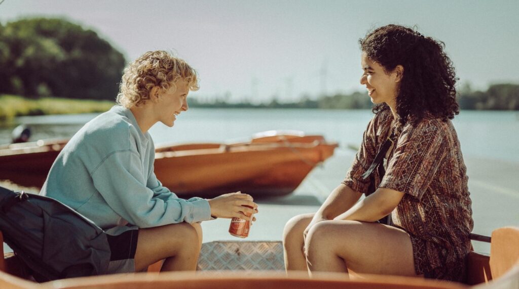 Skiff is the story of Malou, a young girl who practices rowing, specifically the discipline of the skiff. She is alone in this small, narrow boat, rowing to “get everything out of her system,” as she says. Malou is a teenager, questioning her gender and sexual orientation. She doesn’t share the shower with her clubmates, dresses in her two brothers’ clothes, and hides behind an introverted personality. Yet Malou is radiant, her big blue eyes and blonde curls lighting up the screen. Femke Vanhove, who plays her, is certainly a future great actress.